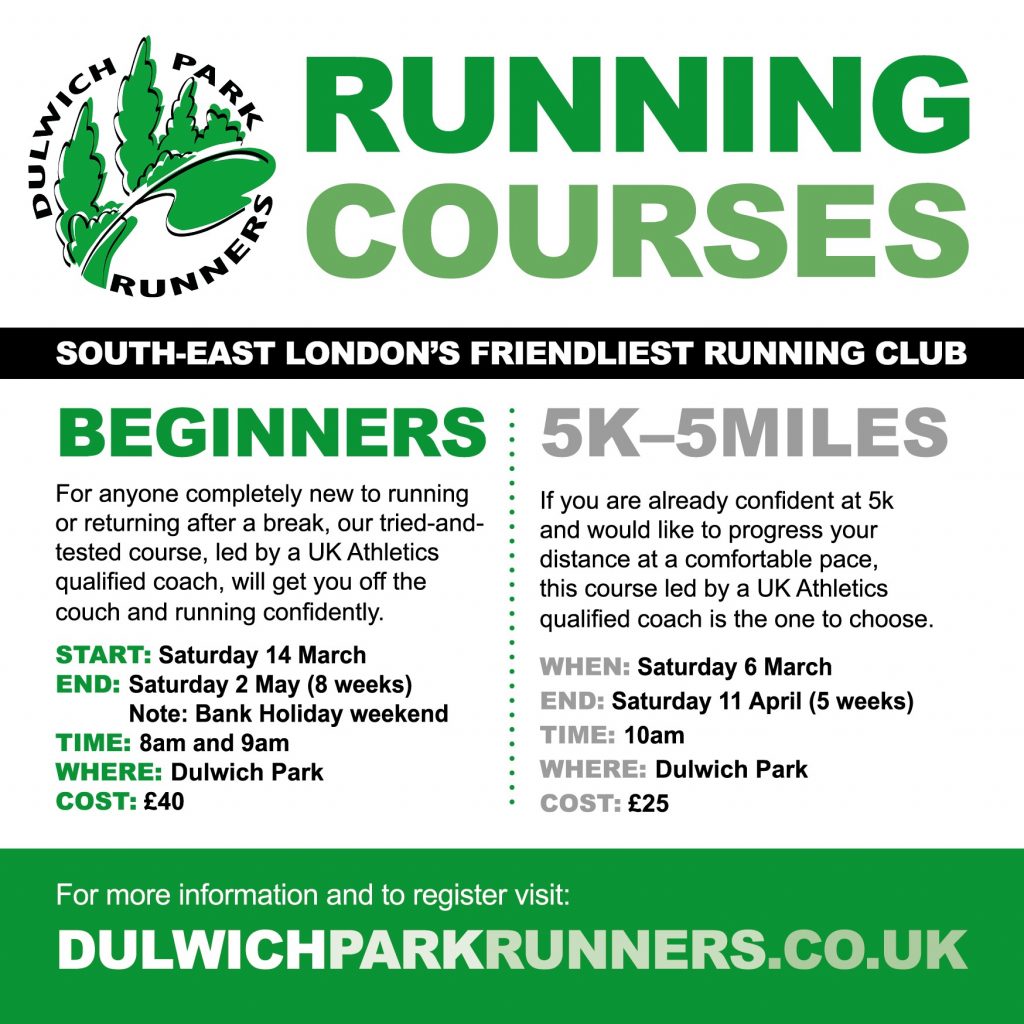 Applications are open here – please spread the word using the leaflet. You can ask questions by emailing beginners@dulwichparkrunners.com, or talk with Susan or Di. The courses are free to DPR members, so a great way of rekindling your passion – just mark your application ‘member’.